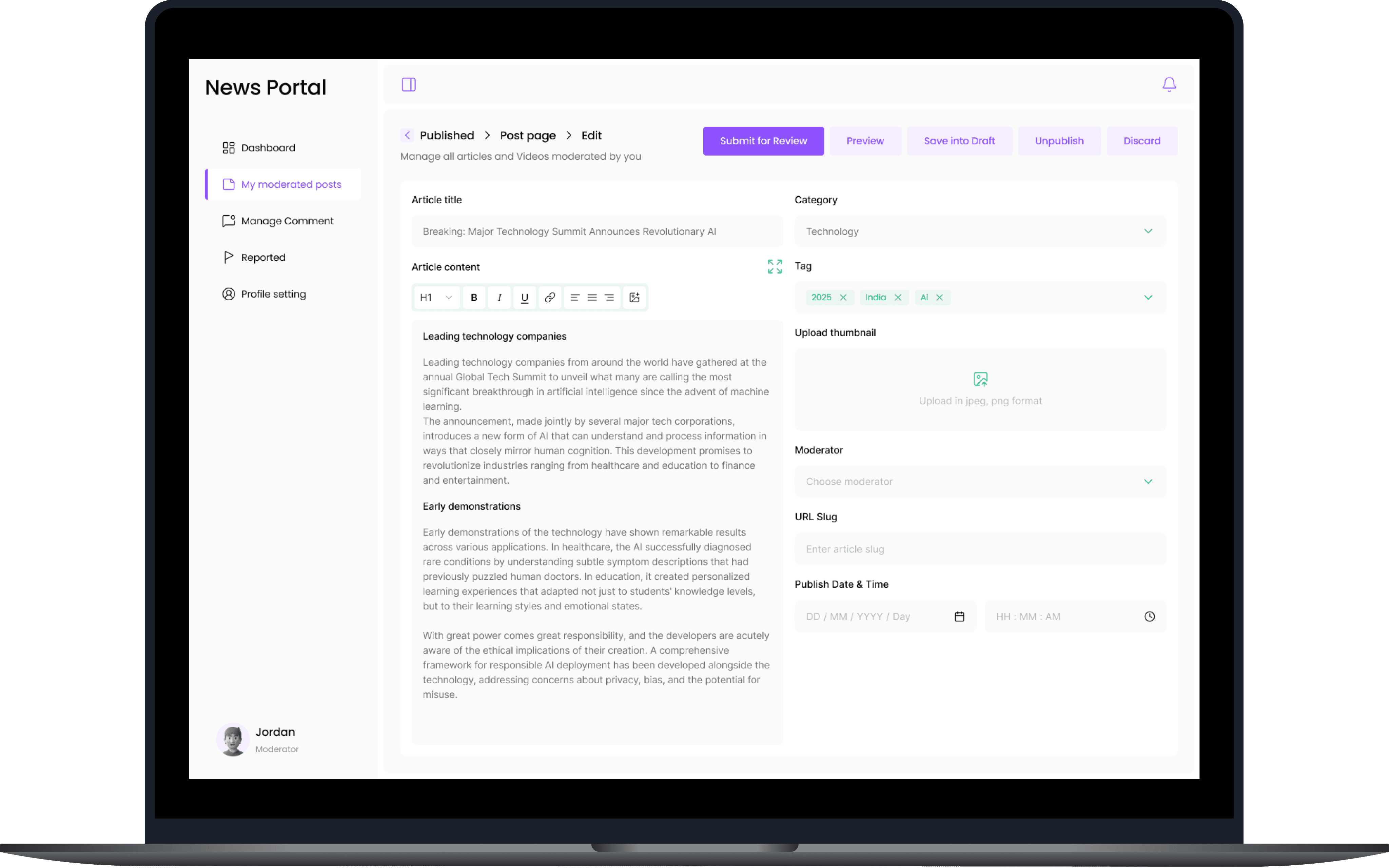 Streamlined News Portal for Role-Based Workflows