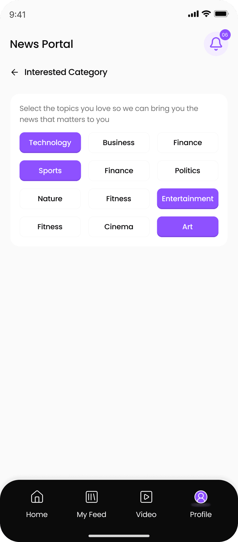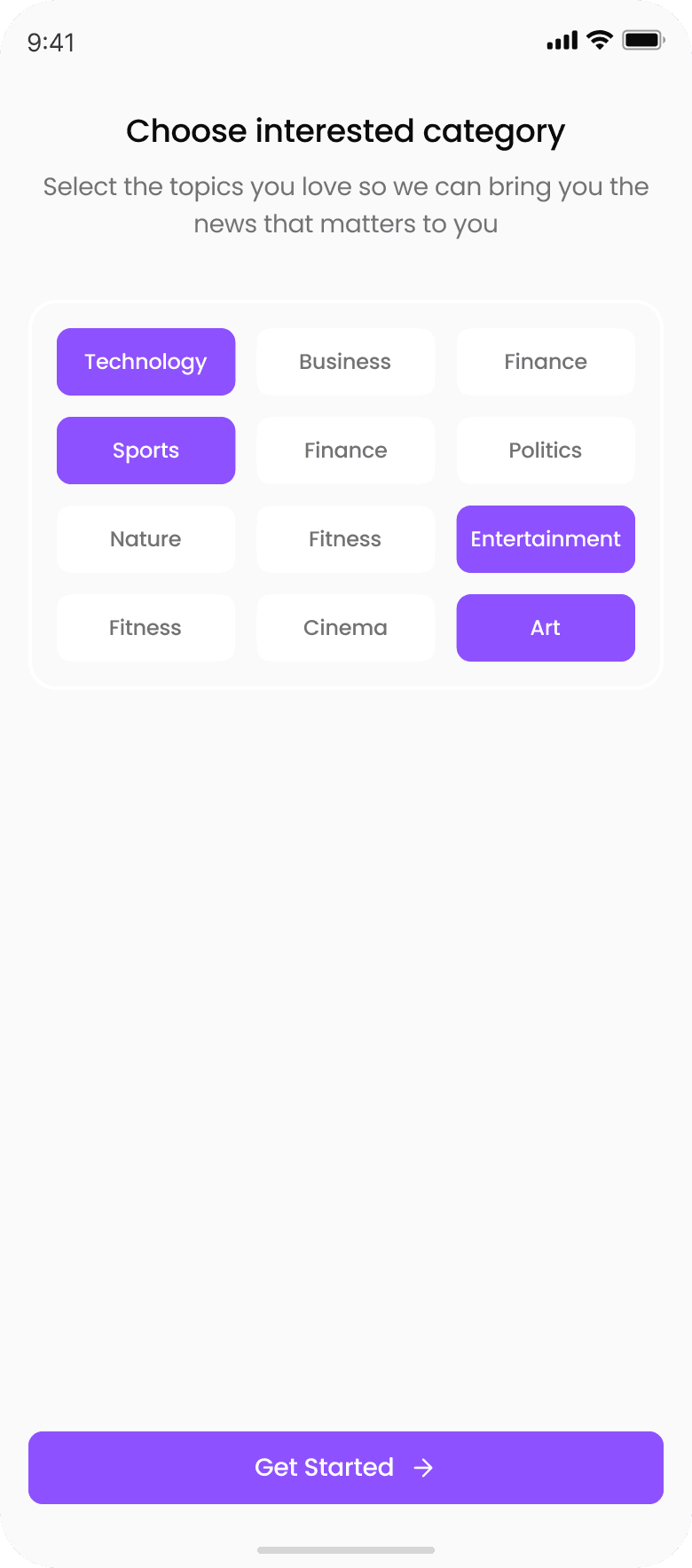 while onboarding let the users to choose their favorite category also can let user to make changes on setting tab.