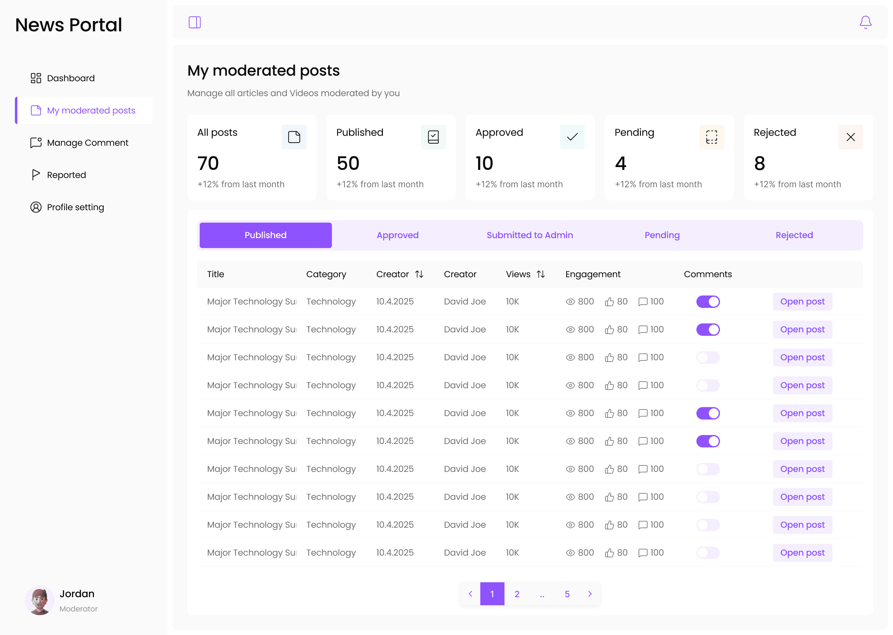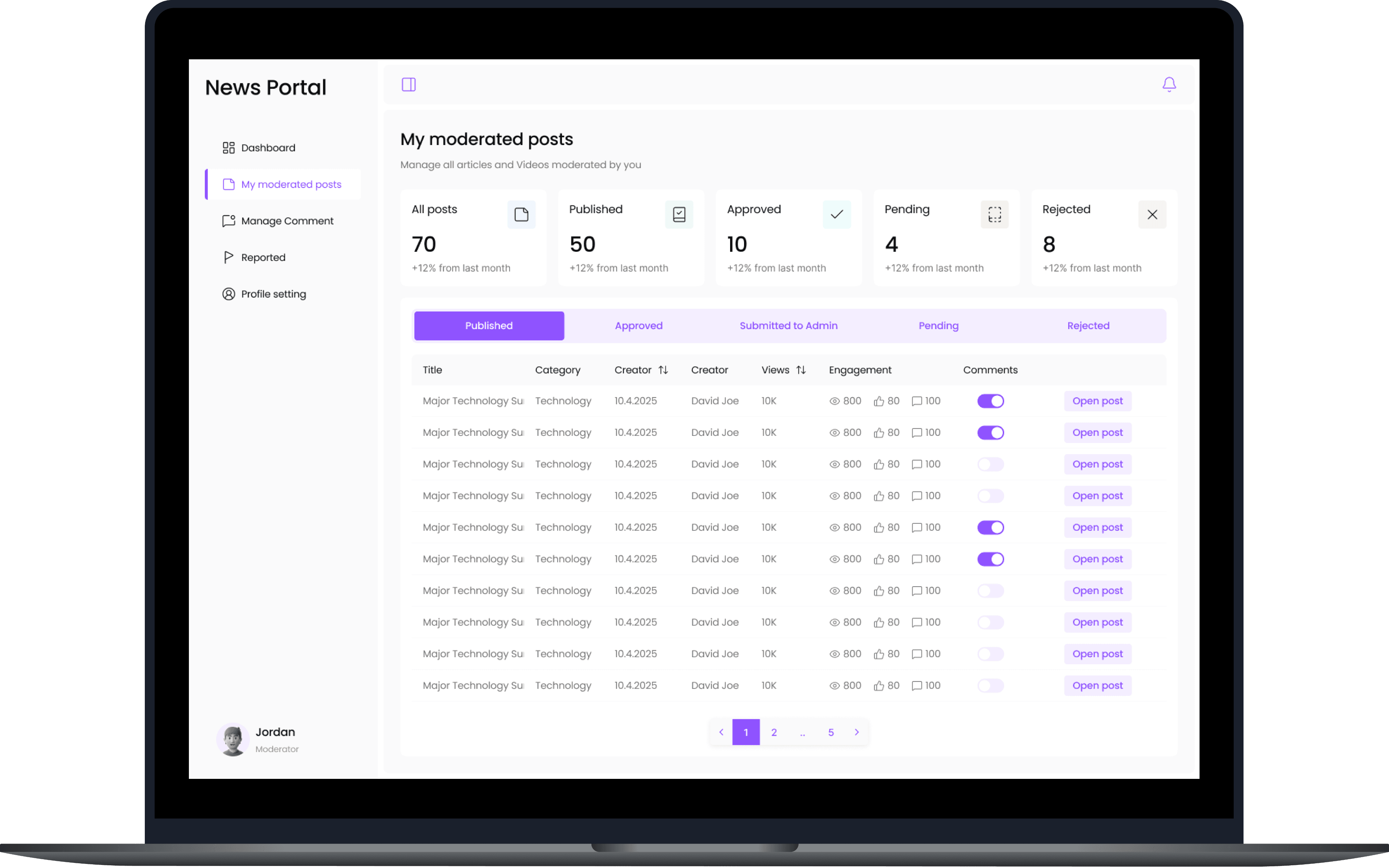 Designed multi-portal system reducing moderation time by 40% for admins, moderators and creators.