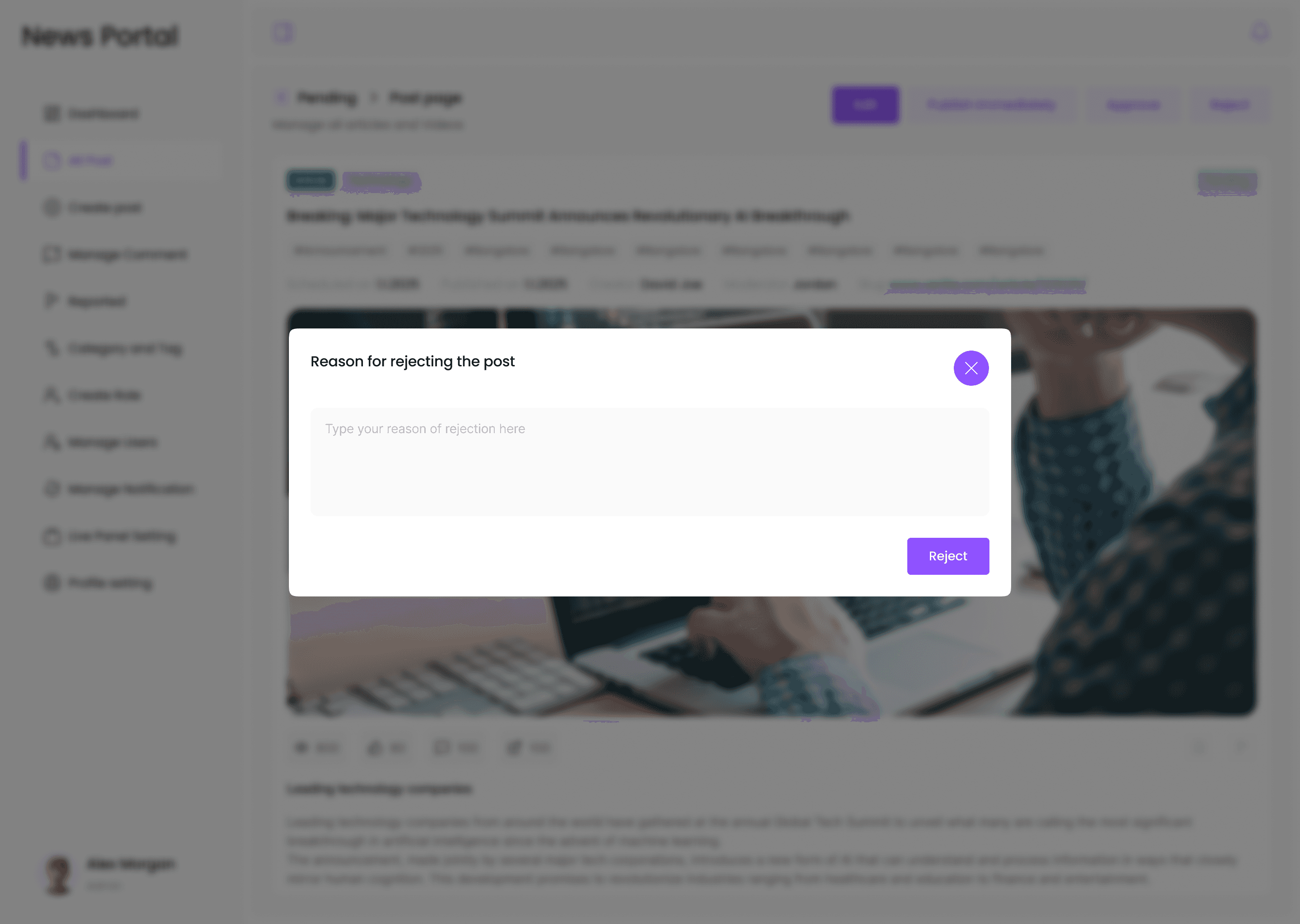 Make separate section for reject reason and maintain the reason history for each rejected posts