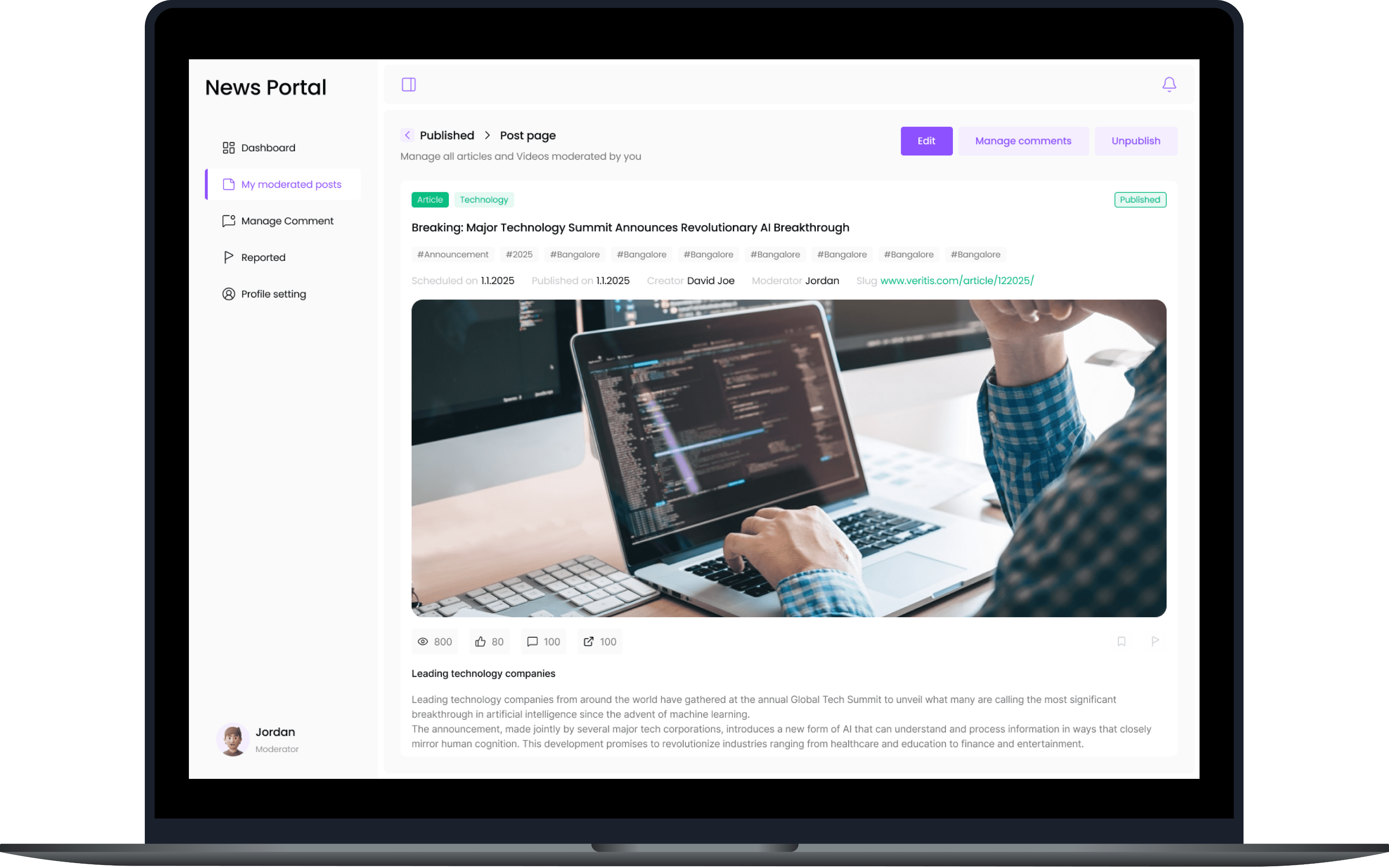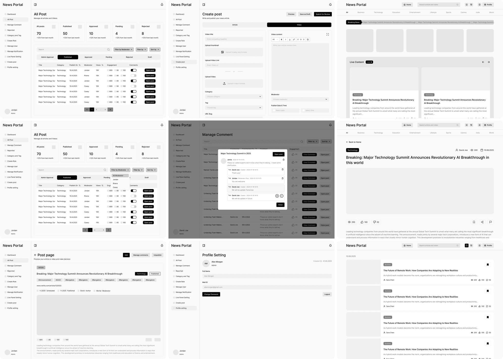 Focused on clean, role-tailored interfaces. Post-handoff, the platform enabled faster publishing (target: 50% reduction in time-to-live), clearer role separation (zero permission overlaps), and scalable growth. Hypothetical metrics include 30% lower moderation backlog and 25% higher reader retention via better discovery—validated through internal walkthroughs.
