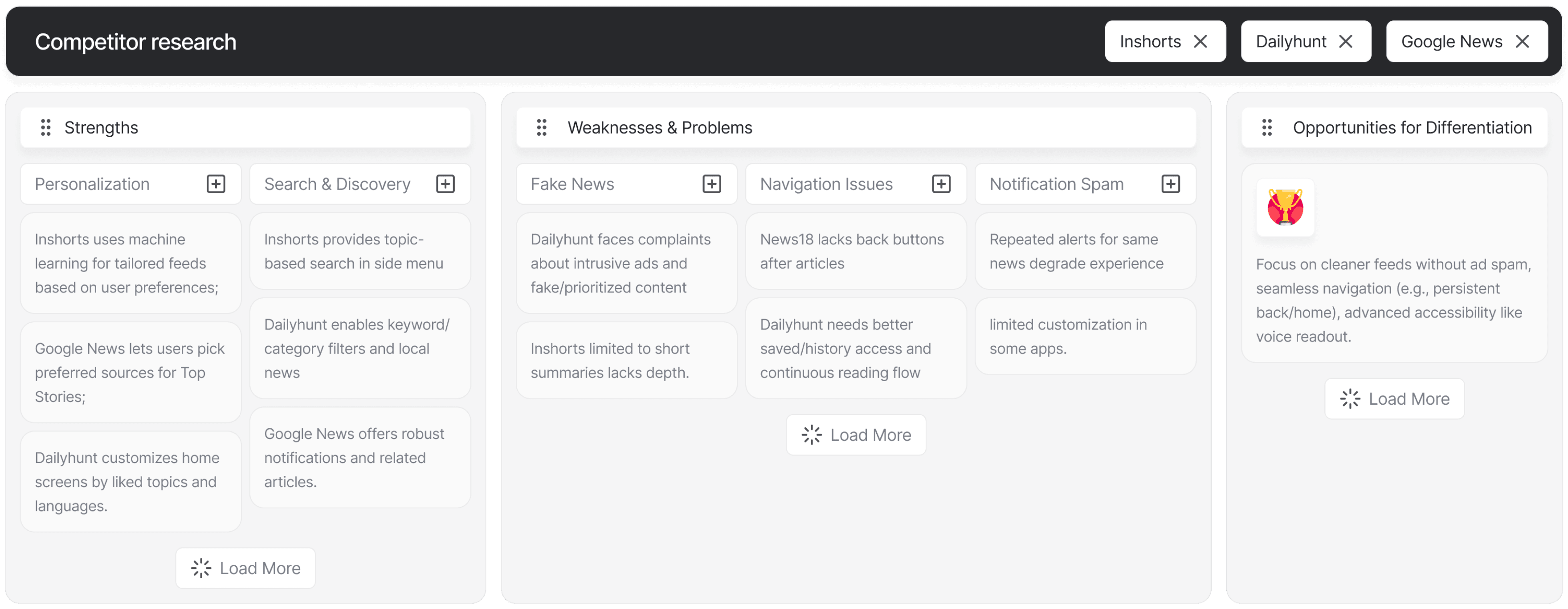 Asked for the direct competitors from the stakeholders and the user. From this I got to know the potential competitors names as follows Inshorts, Dailyhunt, Google News.